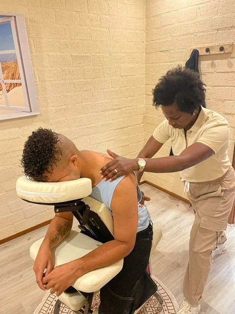 Ik geef verschillende massages zoals onder andere stoelmassage in mijn praktijk.